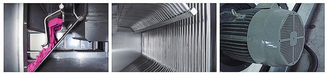 - 精心設計之噴嘴與風車,擁有強大的搓揉與拍打的能力,又由變頻器的控制並具節能與多段風速,適用任何布種加工。
